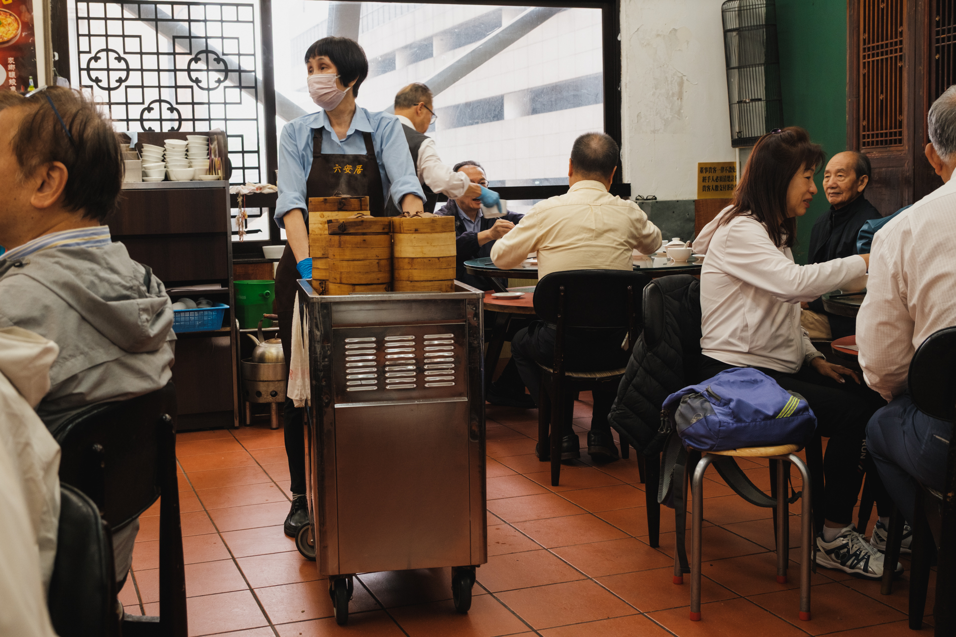 屹立上環的電車路旁的酒樓六安居,一直維持「地下舖面賣唐餅,樓上設茶居雅座」的格局。在平日午飯時間,慕名而來的人龍不絕,大家都排隊坐電梯到樓上茗茶、嘆點心。